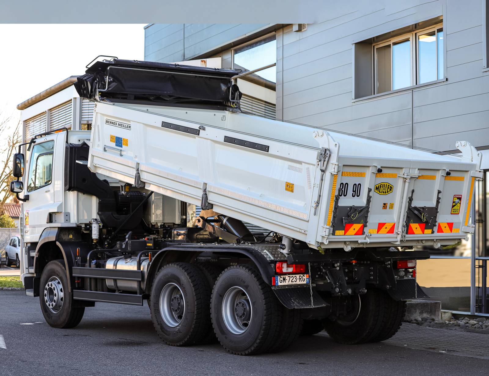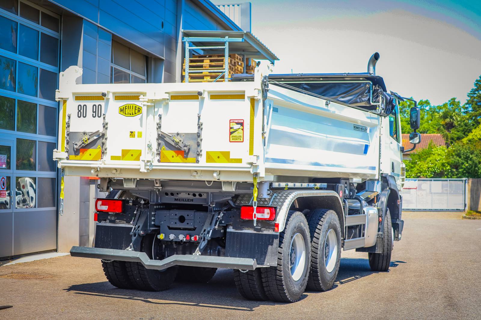 Caractéristiques techniques : Moteur MX-13 480 CV - BV Traxon 12 rapports, MX Engine Brake, régulateur de vitesse adaptatif avec FCW et AEBS-3 - Essieu avant 8 tonnes, essieux arrières 26T, rapport de pont 4,12 - Empattement 4.55m - Réservoir en aluminium 340L - Réservoir ADBlue 45L